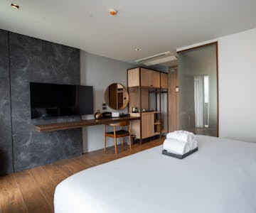 ห้องพักขนาด 28 ตร.ม. มองเห็นวิวเมือง และการตกแต่งครบครัน ให้คุณสัมผัสความนุ่มสบายเป็นพิเศษจากเตียงสลัมเบอร์แลนด์ขนาด 7 ฟุต พร้อมด้วยชุดเครื่องนอนที่ผลิตจากเส้นใยผ้าคุณภาพสูง สมาร์ททีวีขนาด 55 นิ้ว มินิบาร์ อินเทอร์เน็ตความเร็วสูง ห้องอาบน้ำเรนชาวเวอร์ ไดร์เป่าผม 1800 วัตต์ และระเบียงส่วนตัว